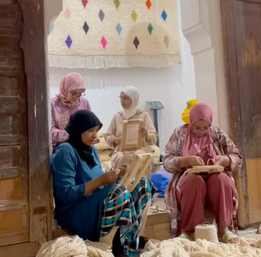 Founded at the beginning of 2019 by three ladies named Khiera, Naima and Sophia from the village of Imelghass, Ait Bouguemez of the High Atlas Mountains of Morocco. Before the founding of the group, the women used to work individually in their houses and made their own rugs which are rarely presented for sale.