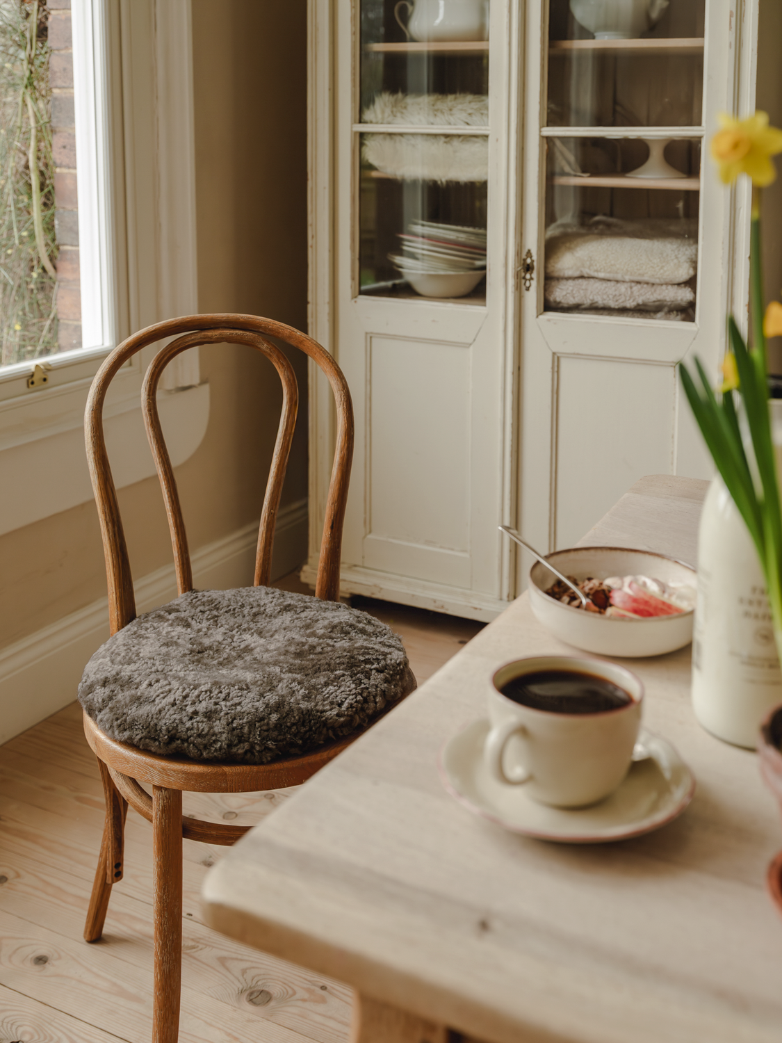 Naturally soft and warm, our circle seat pads add texture and comfort to any chair, whether at the dining table or in a home office. Our double padded filling provides supportive everyday softness, while the two ties allow you to keep it securely in place. A simple addition that brings warmth, ease and a soft layer of everyday comfort.