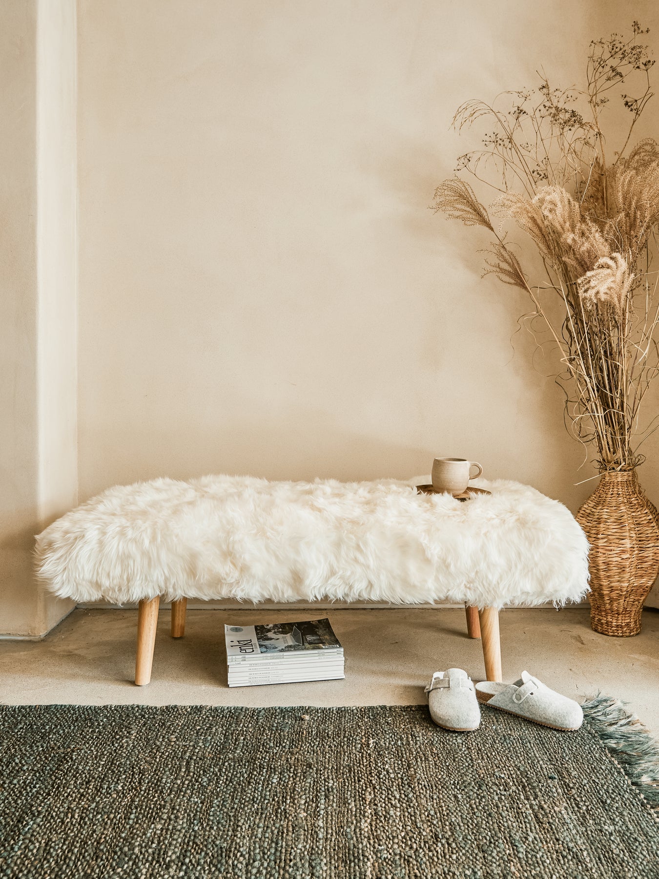 Handmade from five premium New Zealand sheepskins, our statement bedstool is the perfect addition to the foot of your bed, where it will provide a handy perch, or use it to create a stylish window seat. Renowned for its incredibly soft touch and luxuriously thick pile, our sheepskin bedstool is a comfortable seat complete with four robust wooden legs.