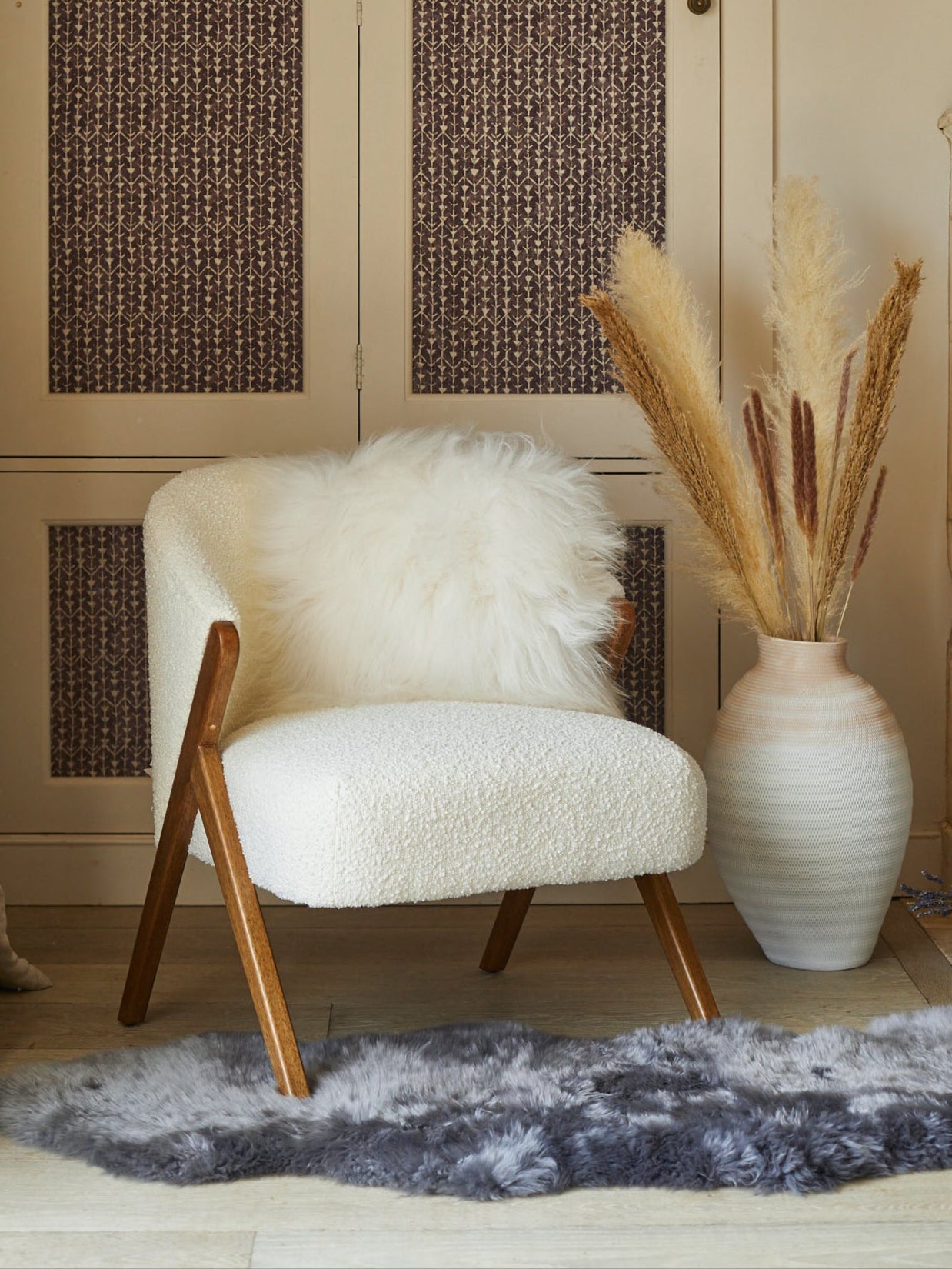 - Front: 100% Natural Icelandic Sheepskin