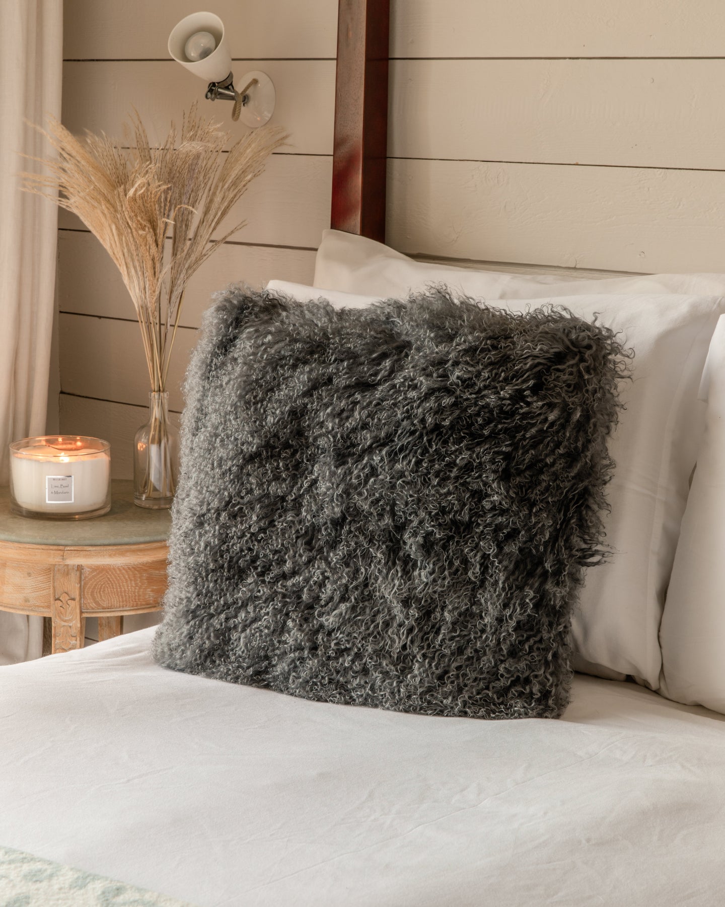 These luxurious cushions are handmade in England using premium sheepskins sourced from the highlands of Tibet. This sumptuously soft fleece has a long and curly wool pile, creating a wonderfully tactile furnishing for all living spaces.